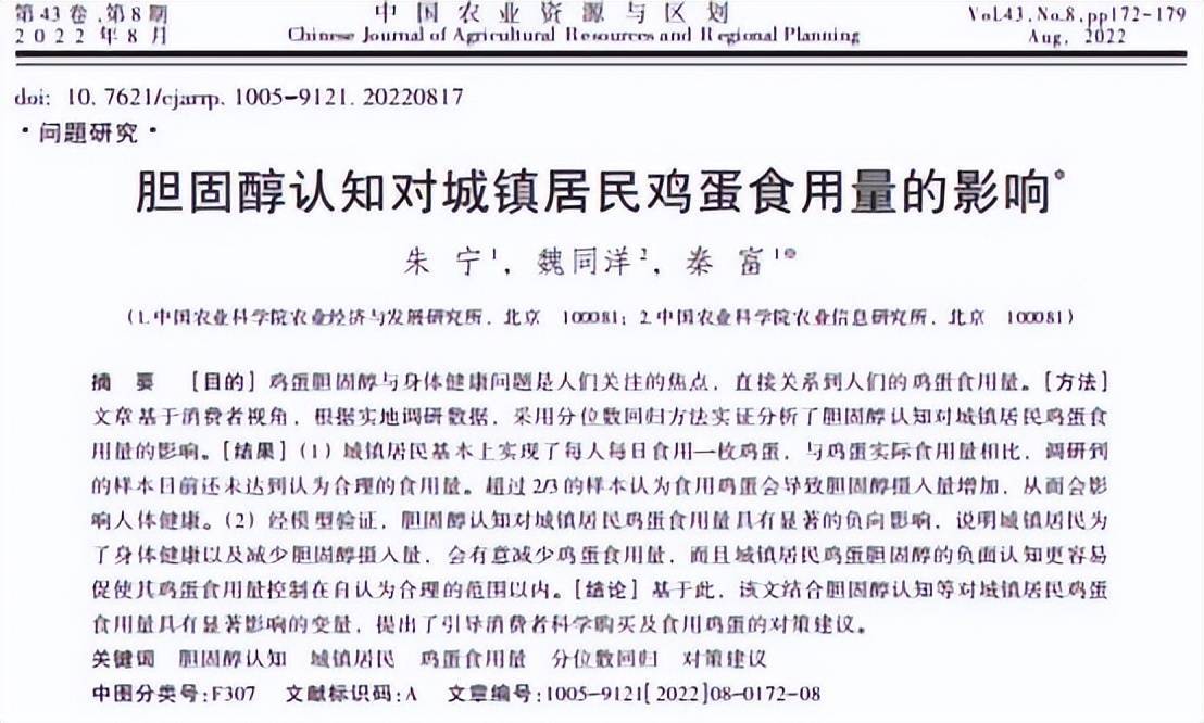 [1]朱宁.胆固醇认知对城镇居民鸡蛋食用量的影响,中国农业资源与区划,2022-08-25