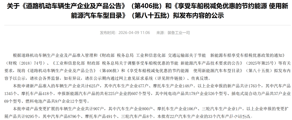 2026年来到第四个月,马上即将迎来2026年北京国际车展,而车企们自然没有停下继续发新车的脚步,此次工信部“车展”就有多款重磅车型亮相。