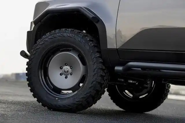 为了让这台LC250拥有更强的通过性,加上外观更加魁梧,KUHL RACING为其配备了JAOS高度可调悬架与垫片组合,整车升高约178mm。搭配37英寸横滨GEOLANDAR M/T G003泥地轮胎和22英寸KUHL VERZ-WHEELS DDR03锻造轮毂,离地间隙达到惊人的400mm。