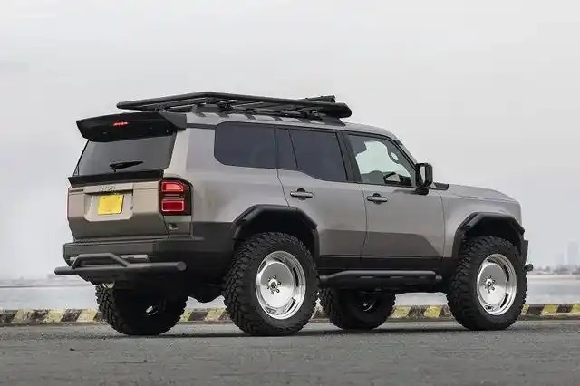 这个案例主要是外观套件为主,动力方面并未进行升级。在中国市场,一汽丰田为2026款普拉多LC250全系标配了2.4T油电混动系统(i-FORCE MAX)。该系统由一台T24A-FTS 2.4升直列四缸涡轮增压发动机和一台48匹电机组成,搭配8速手自一体变速箱,系统综合最大功率为243千瓦(约330马力),峰值扭矩高达630牛·米。而日本本土市场则提供2.7升自然吸气汽油发动机(2TR-FE)可输出163匹马力,峰值扭矩246牛·米,匹配6速自动变速箱;还有更具越野潜力的2.8升直列四缸柴油涡轮增压发动机(1GD-FTV)可输出204匹马力,峰值扭矩500牛·米,匹配8速自动变速箱。